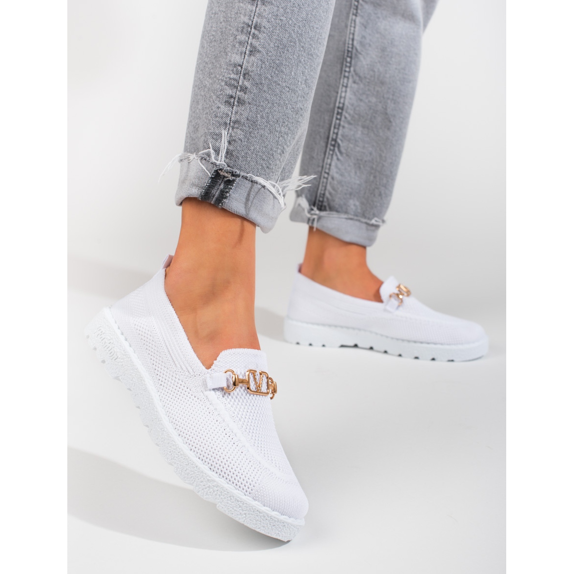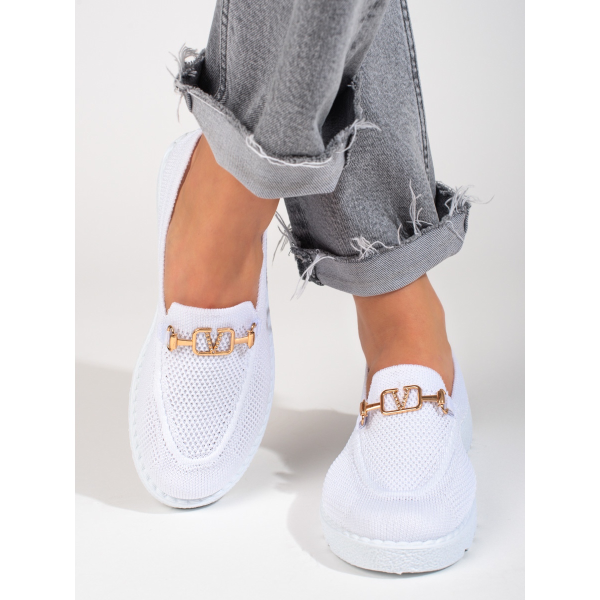 SHELOVET Tekstylne mokasyny damskie Shelovet białe