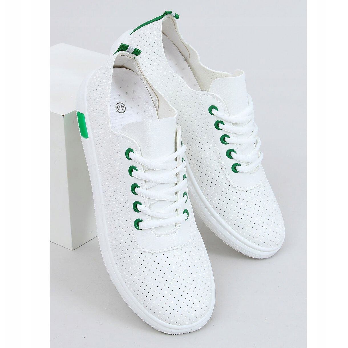 Szczegóły: Tenisówki damskie biało-zielone LA42 Green białe