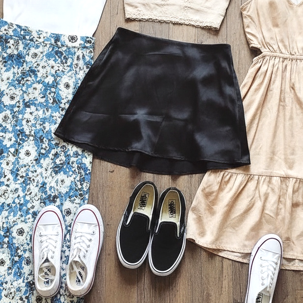 Nie ma bardziej wszechstronnego buta niż białe tenisówki canvas. Łączą się z praktycznie każdym kolorem i wzorem — a to oznacza, że jedna para może pasować do dziesiątek różnych stylizacji. W 2026 roku białe canvas sneakers najczęściej widzimy w połączeniu z jedwabnymi sukienkami i spódnicami midi, co tworzy bardzo interesujący kontrast — to zestawienie eleganckiego z casualowym, które jest jednym z kluczowych trendów stylistycznych sezonu.