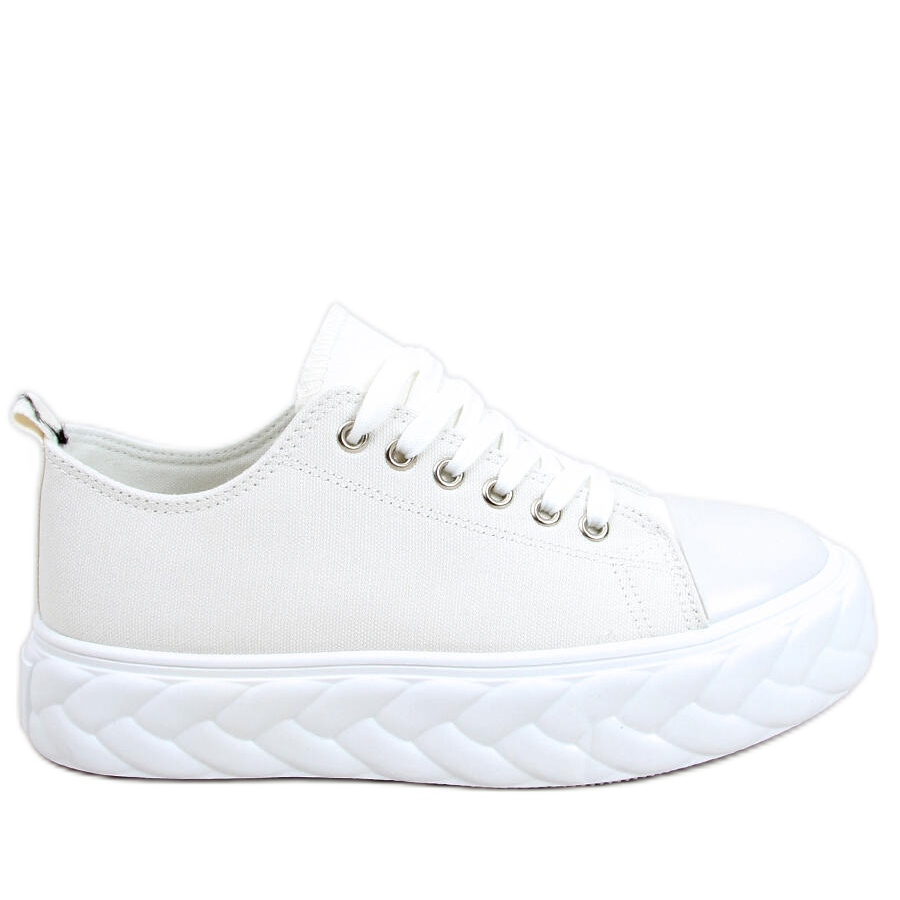 Biały kolor tych trampków to klasyka, która nigdy nie wychodzi z mody. Pasują do każdej stylizacji – zarówno casualowych, jak i bardziej wyszukanych outfitów. Dzięki płaskiemu obcasowi i niskiej wysokości, zyskujesz swobodę ruchów oraz komfort chodzenia przez cały dzień.
