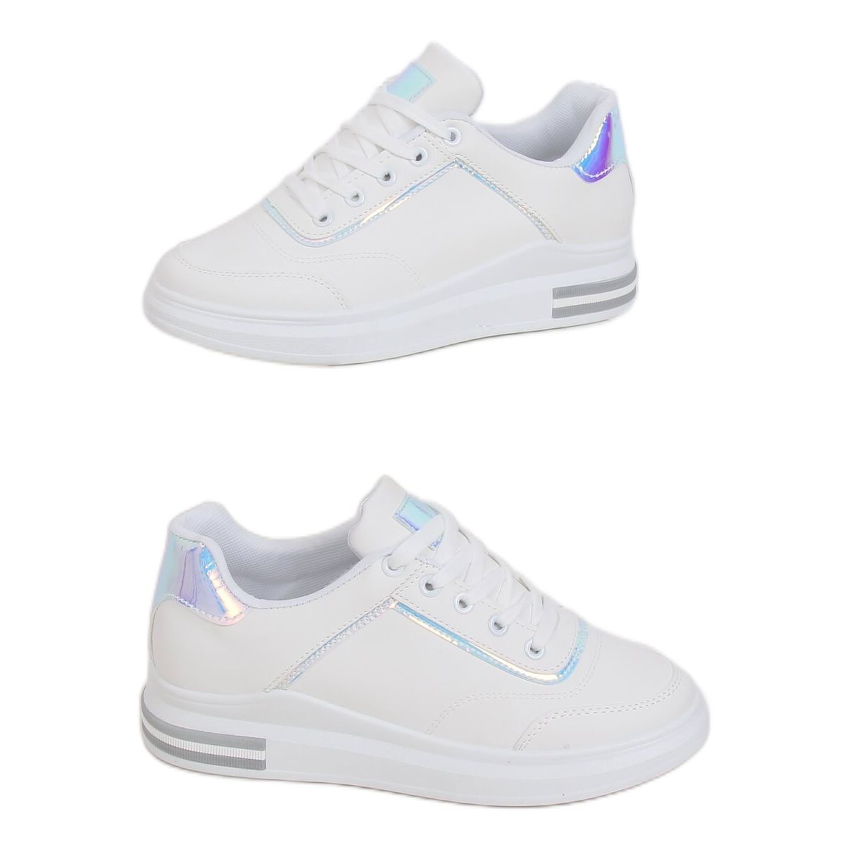 Odkryj modę i komfort z damskimi trampkami białymi 1239-Y Silver w odcieniach szarości! Te sznurowane trampki to idealny wybór dla kobiet, które cenią sobie styl oraz wygodę na co dzień. Dzięki ukrytemu koturnowi o wysokości 5 cm, Twoje nogi optycznie się wydłużą, a Ty poczujesz się pewnie w każdej sytuacji.