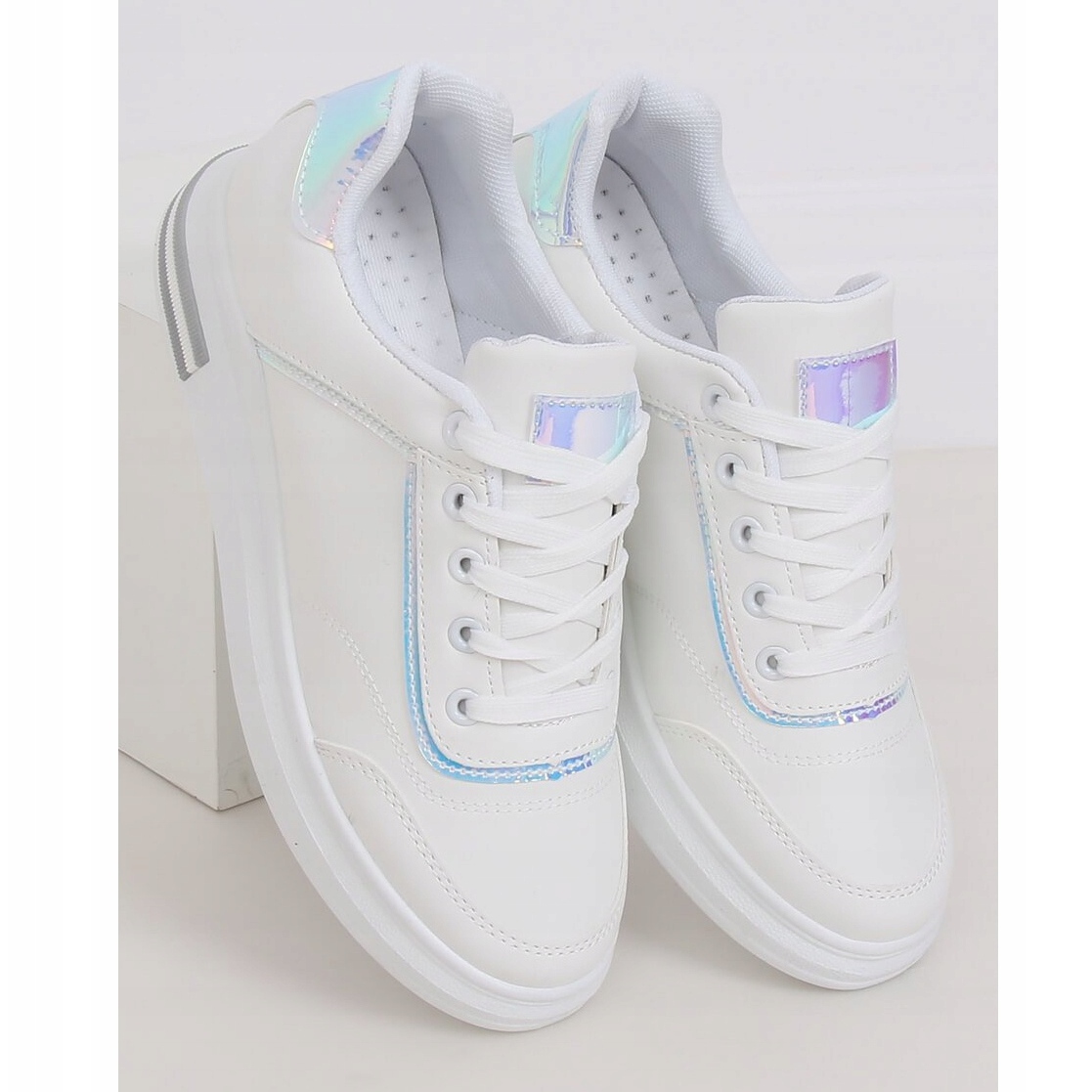 Wykonane z wysokiej jakości skóry ekologicznej, te trampki zachwycają holograficznymi dodatkami, które nadają im unikalny charakter. Wnętrze butów pokryte jest miękką tkaniną, co gwarantuje wygodę podczas noszenia, nawet przez długie godziny. Okrągły nosek i klasyczne zapięcie sznurowane sprawiają, że są one nie tylko modne, ale również funkcjonalne.