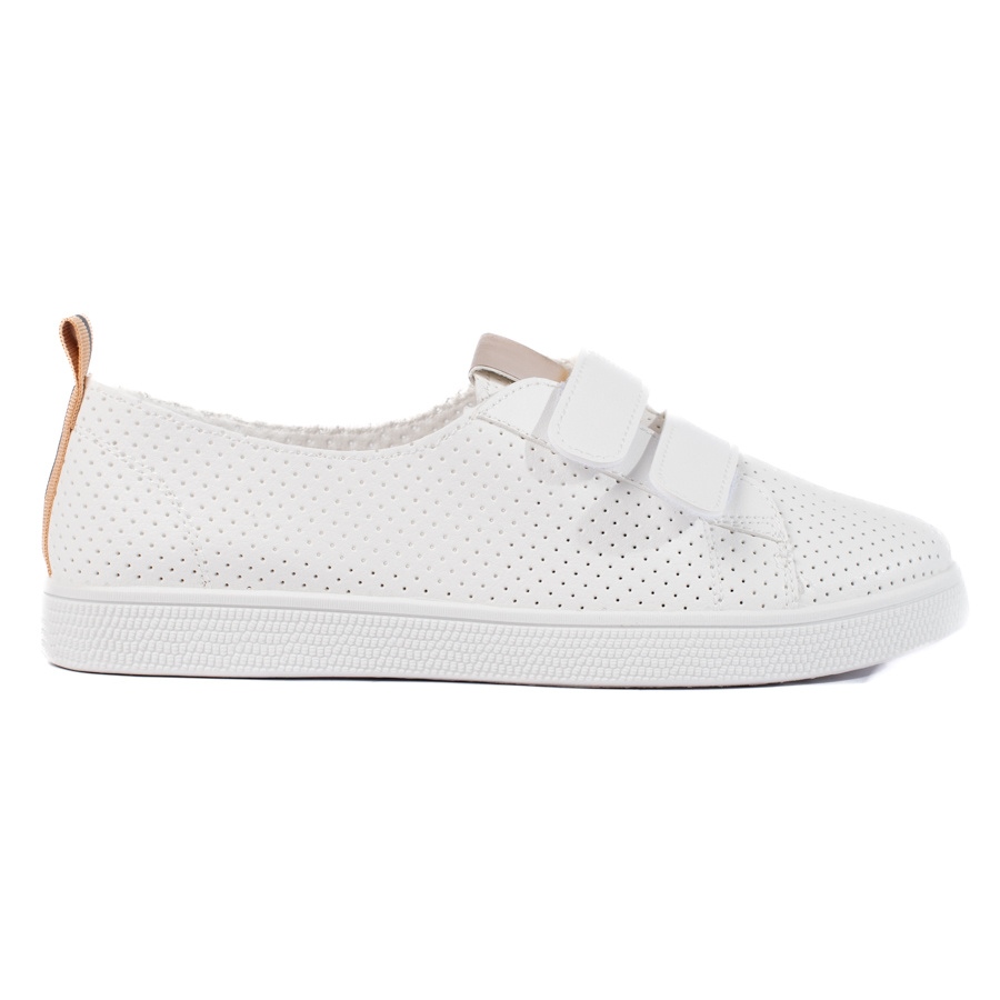 Trampki cechują się sportowym i casualowym stylem, co sprawia, że będą doskonałym uzupełnieniem większości codziennych stylizacji. Ich uniwersalny biały kolor sprawia, że łatwo je zestawić z różnorodnymi ubraniami, od dżinsów po zwiewne sukienki. Dodatkowym atutem jest praktyczne zapięcie na rzepy, które nie tylko ułatwia zakładanie i zdejmowanie butów, ale także pozwala na ich regulację, co zwiększa komfort noszenia.