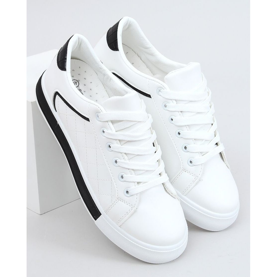 Inna marka Trampki damskie biało-czarne A88-86 Black białe