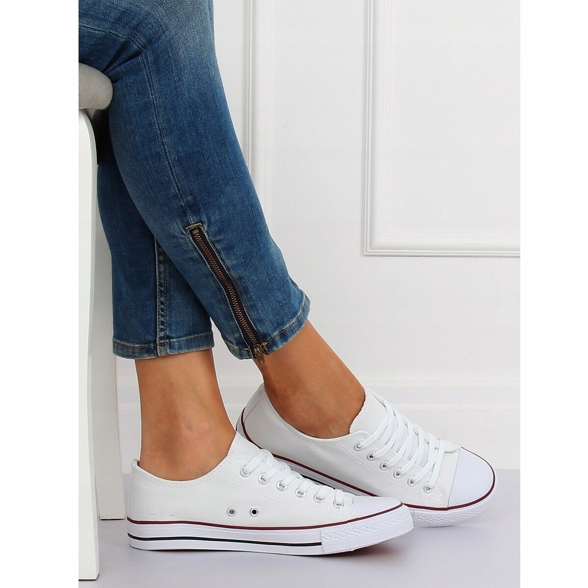 Inna marka Trampki damskie klasyczne białe JD05P WHITE/RED