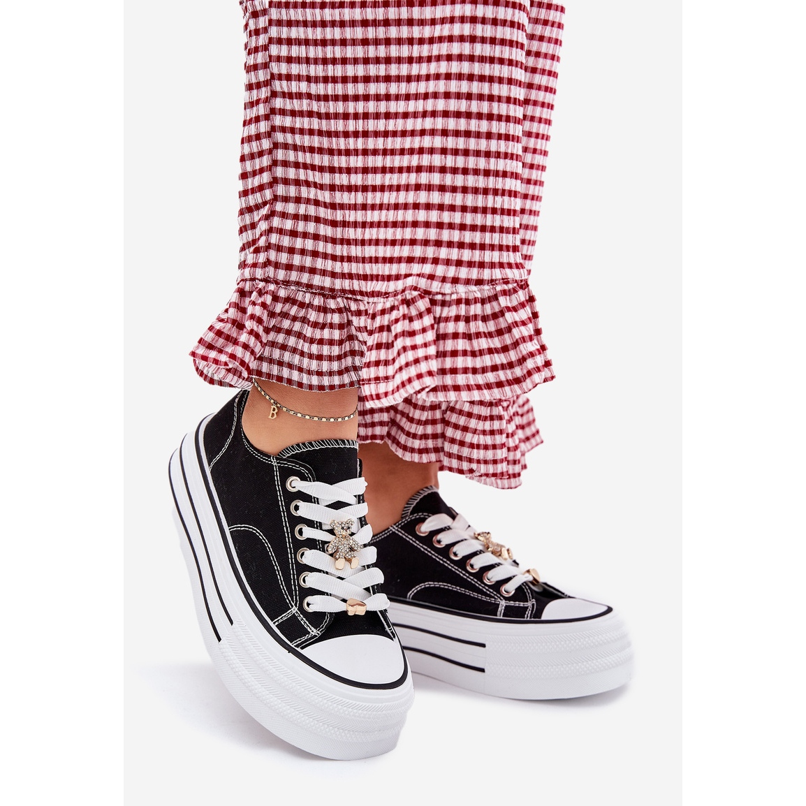 Szczegóły: Trampki Damskie Na Platformie Ze Złotymi Przypinkami Czarne