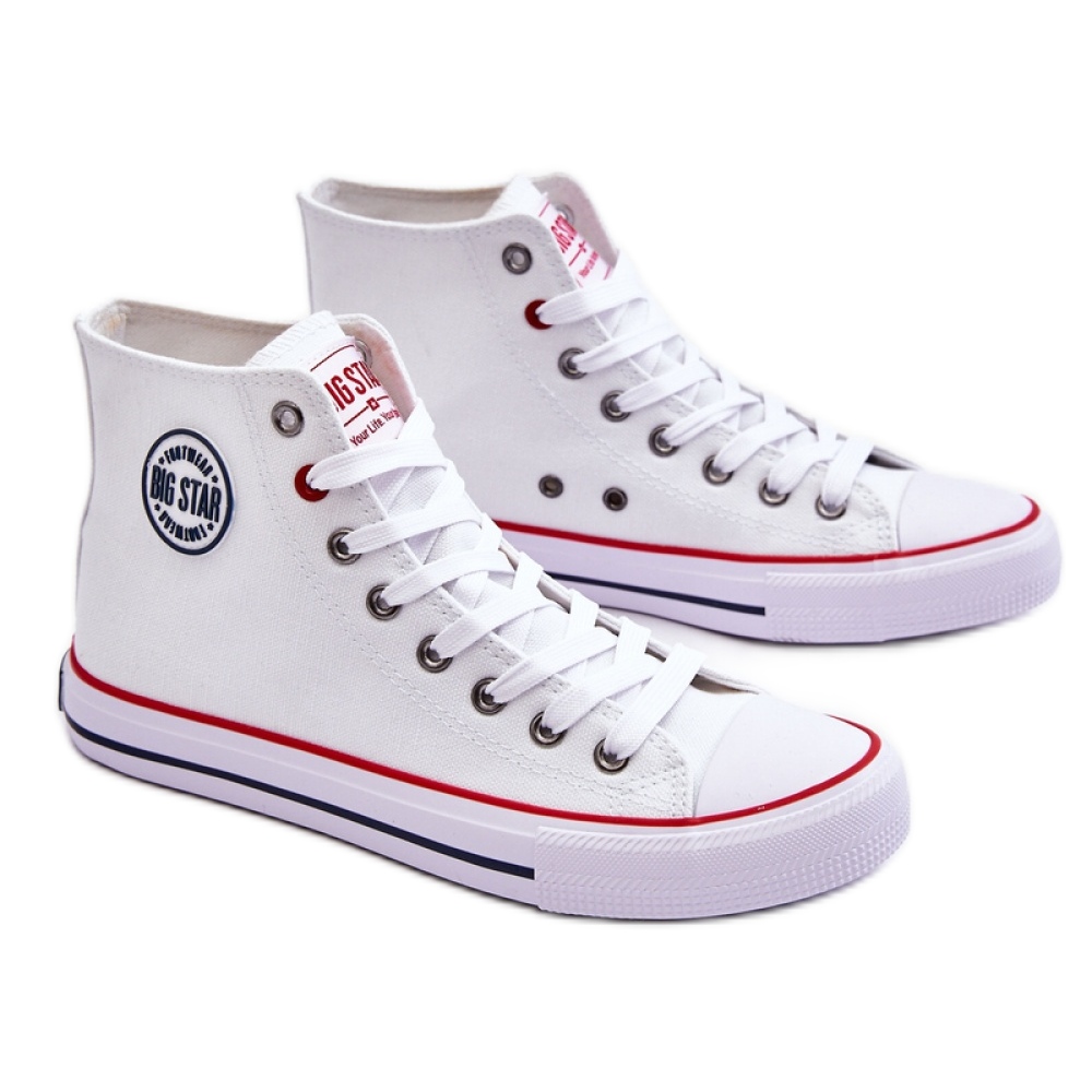 Trampki Model Big Star T274026 White - Step in style to doskonały wybór dla kobiet, które cenią sobie połączenie komfortu i modnego designu. Wysokie trampki od renomowanej polskiej marki BIG STAR wyróżniają się nie tylko estetyką, ale także funkcjonalnością. Ich cholewka wykonana z wysokiej jakości tkaniny nie tylko wygląda świetnie, ale również zapewnia odpowiednią wentylację i wygodę podczas noszenia.