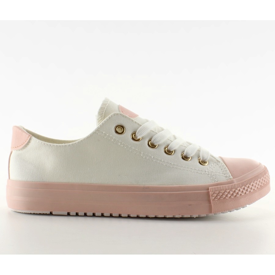 Trampki na kolorowej gumie W-3051 White to doskonały wybór dla każdej nowoczesnej kobiety, która ceni sobie wygodę połączoną z modnym designem. Te urocze płócienne buty w klasycznej bieli wyróżniają się oryginalną kolorową gumą w pastelowych odcieniach, która nadaje im wyjątkowego charakteru oraz świeżości.