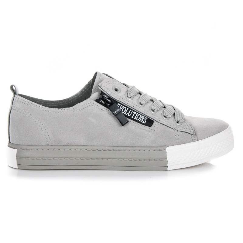 Wkładka wykonana z tkaniny gwarantuje odpowiednią przewiewność oraz komfort noszenia przez cały dzień. Szare trampki na platformie to niezwykle uniwersalna propozycja, która doskonale sprawdzi się w połączeniu z jeansami, spódnicą czy nawet sukienką.