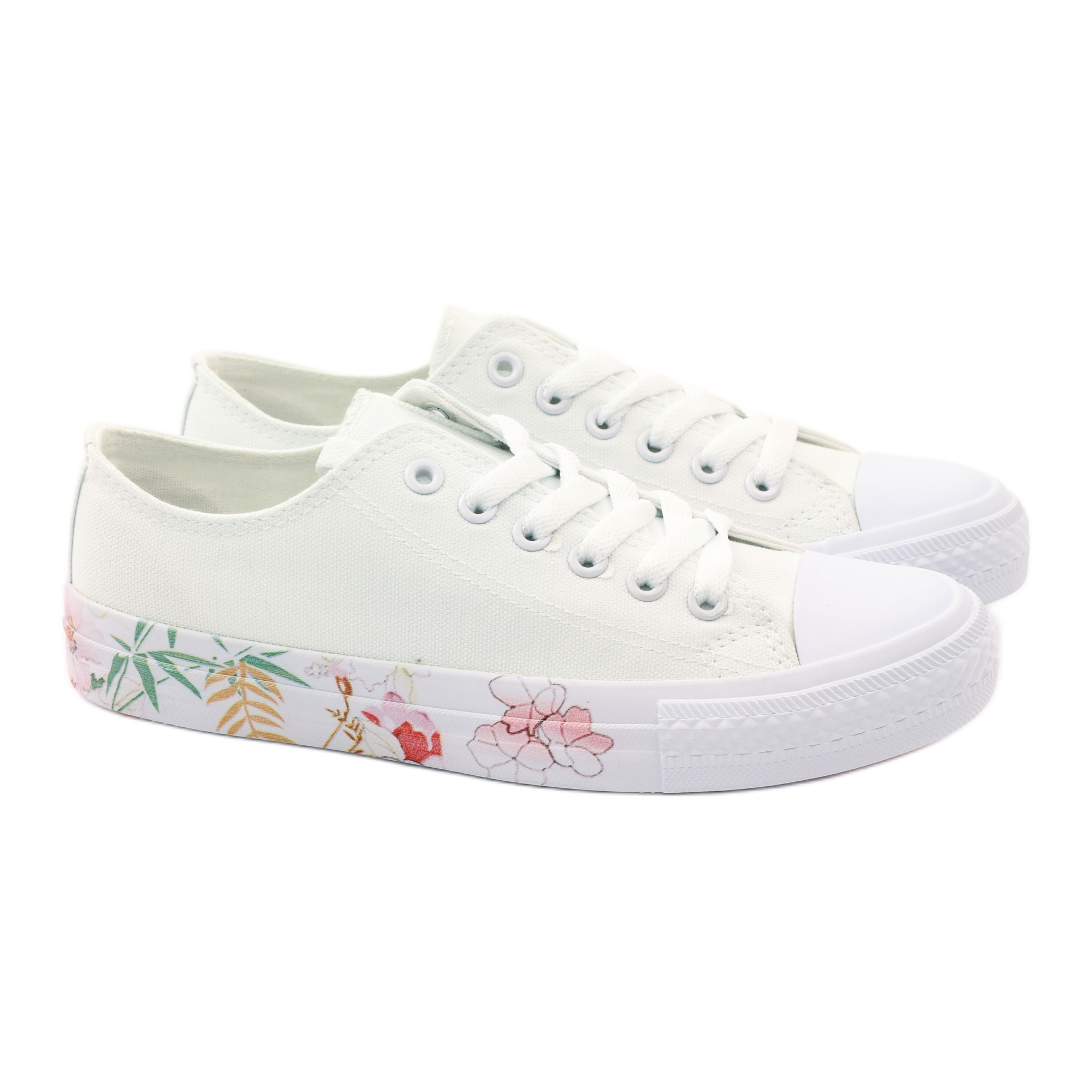 Trampki półtrampki tenisówki Mckey 139 w kolorze białym to idealny wybór dla kobiet ceniących sobie modny i wygodny styl. Te niezwykle stylowe buty zostały zaprojektowane według tradycyjnego kroju, który od lat cieszy się uznaniem w świecie mody. Dzięki grubej, kwiatowej gumowej podeszwie, trampki zapewniają doskonałą izolację stopy od podłoża oraz antypoślizgowość, co przekłada się na bezpieczeństwo użytkowania w każdej sytuacji.