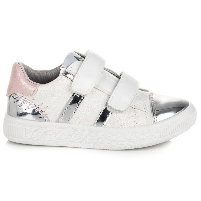 Delikatny, szary kolor połączony z subtelnym brokatowym wykończeniem sprawia, że te trampki American Club to idealny wybór dla modnych dziewczynek. Wykonane z trwałej skóry ekologicznej, zapewniają estetyczny wygląd i łatwość pielęgnacji. Zapięcie na rzepy gwarantuje szybkie i pewne dopasowanie — idealne do codziennego noszenia i zabaw.