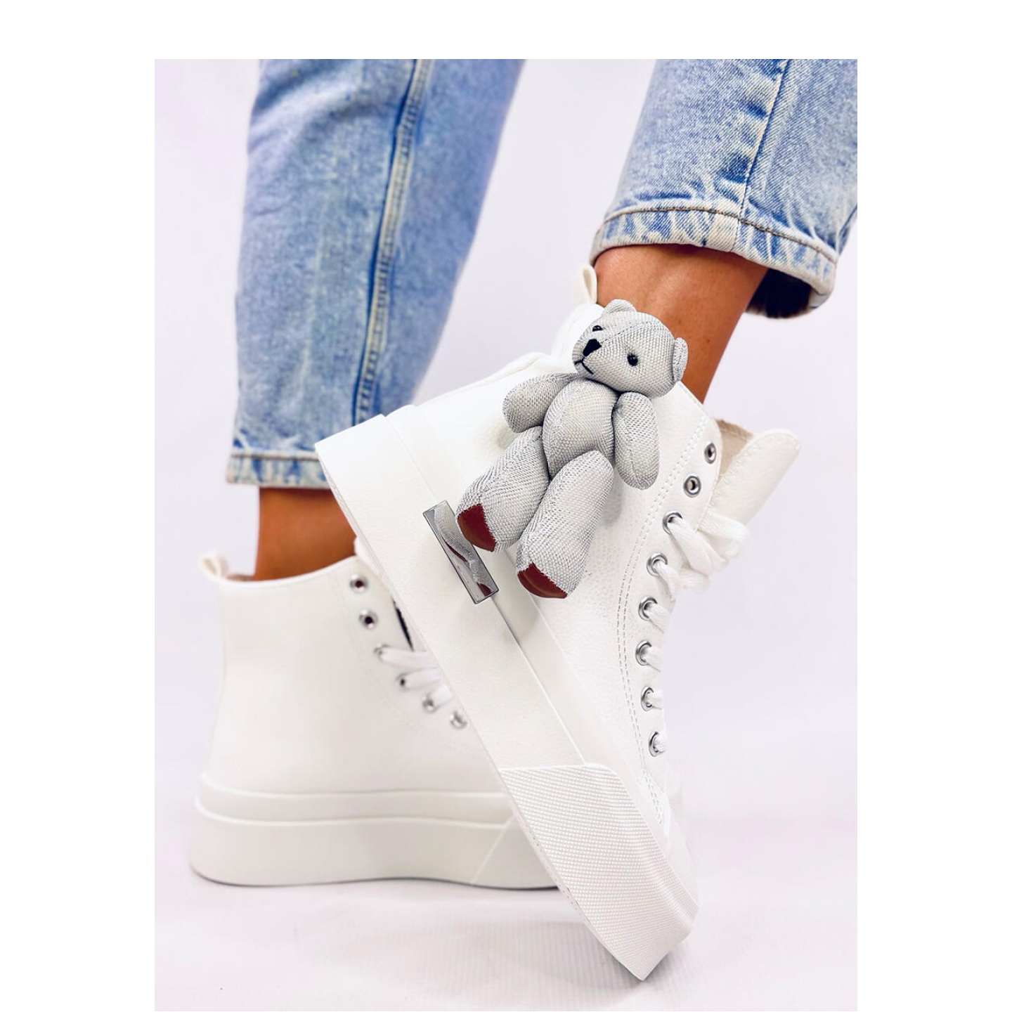 Odkryj najnowszy hit sezonu – trampki Rooks White od Inello! Te urokliwe damskie trampki za kostkę zachwycają nie tylko swoim klasycznym fasonem, ale także modną platformą oraz wyjątkowym, pluszowym misiem, który doda Twojemu lookowi niepowtarzalnego charakteru.