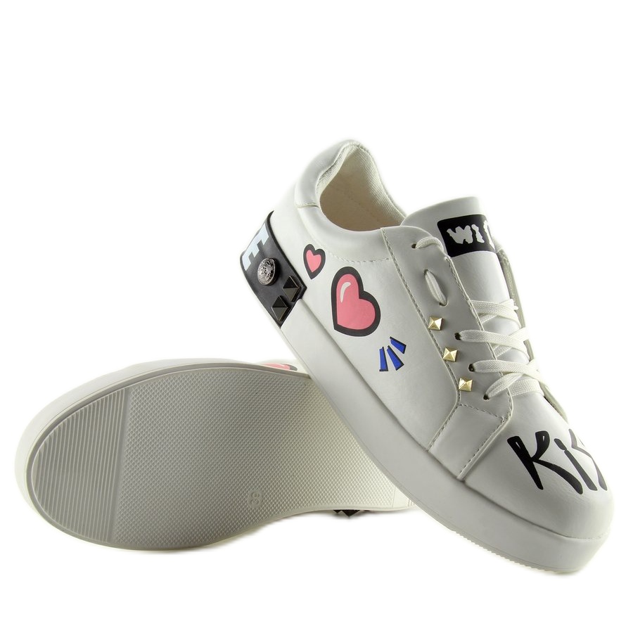 Przedstawiamy Trampki z napisami białe T302 White – obłędne buty sportowe, które łączą w sobie wyjątkowy design i wygodę noszenia! Te urocze i zabawne trampki, zdobione oryginalnymi wzorami oraz modnymi ćwiekami, z pewnością dodadzą fantazji oraz świeżości każdej Twojej stylizacji.