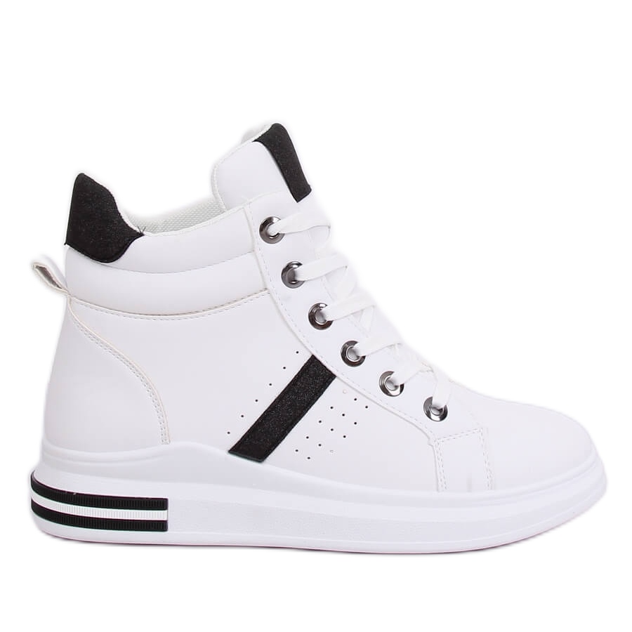 Poznaj białe trampki za kostkę CB-19078 WHITE/BLACK – idealne na każdą okazję! Te sznurowane sneakersy damskie zwracają uwagę swoją stylową formą oraz połyskującymi brokatowymi wstawkami, które dodają im unikalnego charakteru. Wysoka podeszwa o wysokości 3 cm nie tylko zwiększa komfort noszenia, ale także wpływa na modny wygląd, który doskonale komponuje się z różnymi stylizacjami.