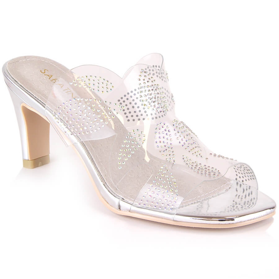 Sabatina Transparentne klapki na obcasie z cyrkoniami srebrne Sabatina 1014-16 srebrny