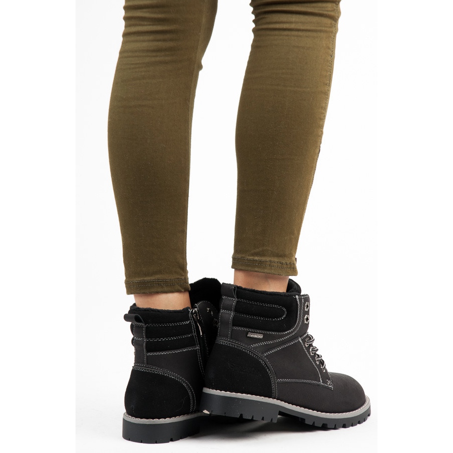 Wykonane z ekologicznej skóry, traperki zachwycają swoją solidnością oraz trwałością, a ich czarna kolorystyka sprawia, że doskonale komponują się z różnorodnymi stylizacjami – od codziennych po bardziej eleganckie. Zastosowany płaski obcas o wysokości 3 cm gwarantuje wygodę noszenia przez cały dzień.