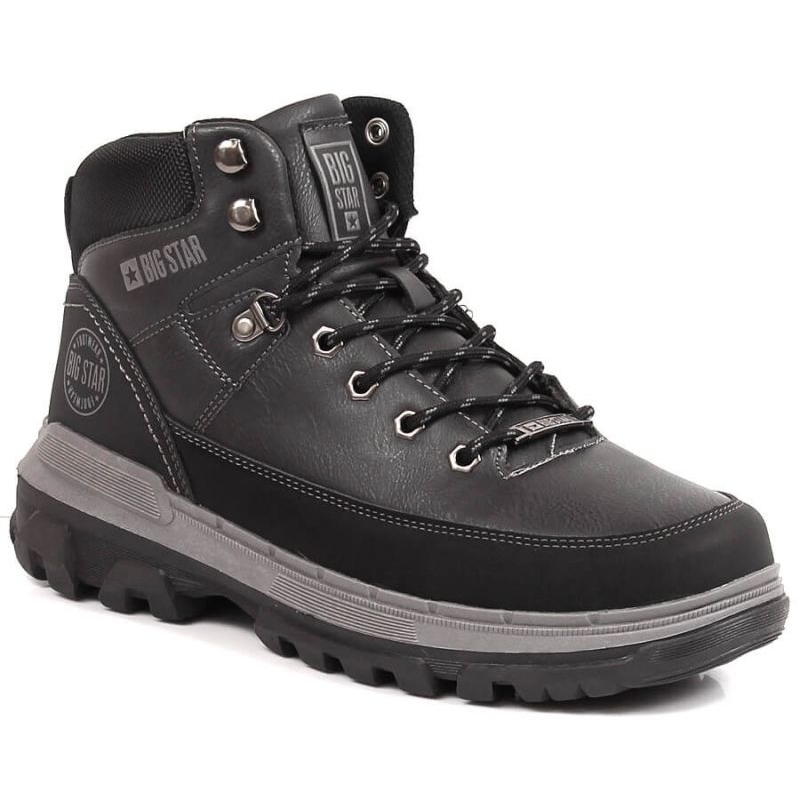 Trapery Big Star INT1801C — czarne, stylowe i uniwersalne buty męskie stworzone do codziennego użytku. Model za kostkę łączy miejską estetykę z praktycznymi rozwiązaniami: sznurowanie dla idealnego dopasowania, tekstylna wyściółka dla komfortu oraz gumowa podeszwa zapewniająca dobrą przyczepność. Wykonane z wysokiej jakości materiałów syntetycznych, w eleganckiej, uniwersalnej czerni — łatwe do zestawienia z różnymi stylizacjami.
