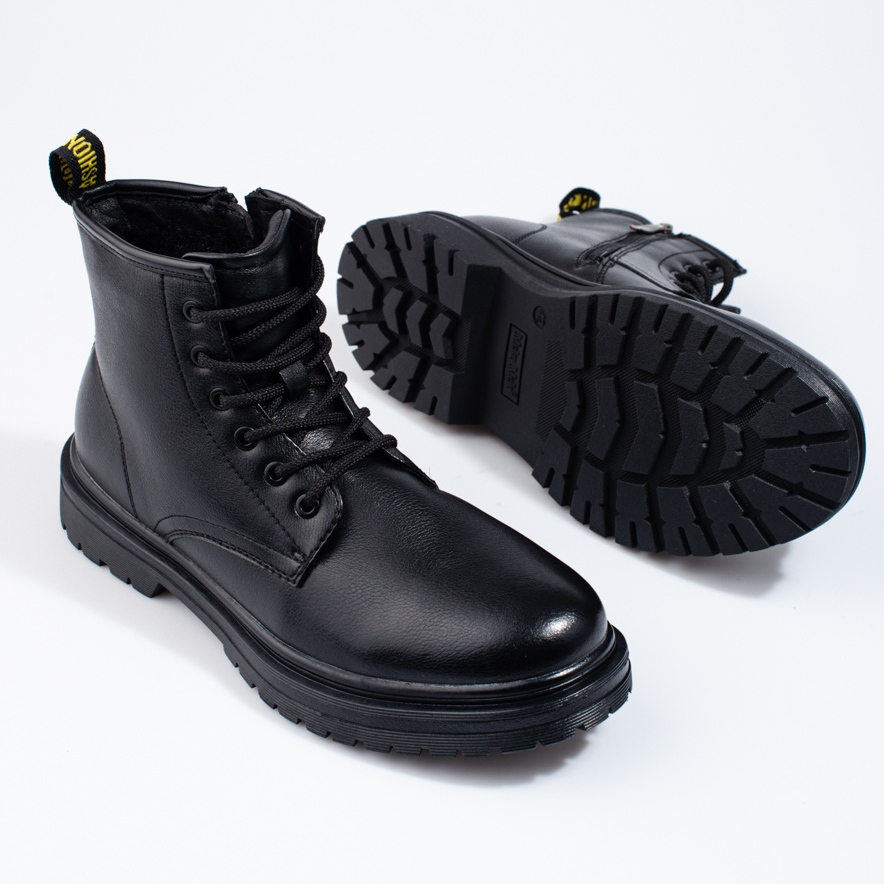 Wykonane z ekologicznej skóry, trapery te są nie tylko przyjazne dla środowiska, ale także łatwe w pielęgnacji. Black - głęboki czarny kolor sprawia, że buty świetnie komponują się z różnorodnymi stylizacjami, idealnie wpisując się w casualowy charakter codziennych outfitów.
