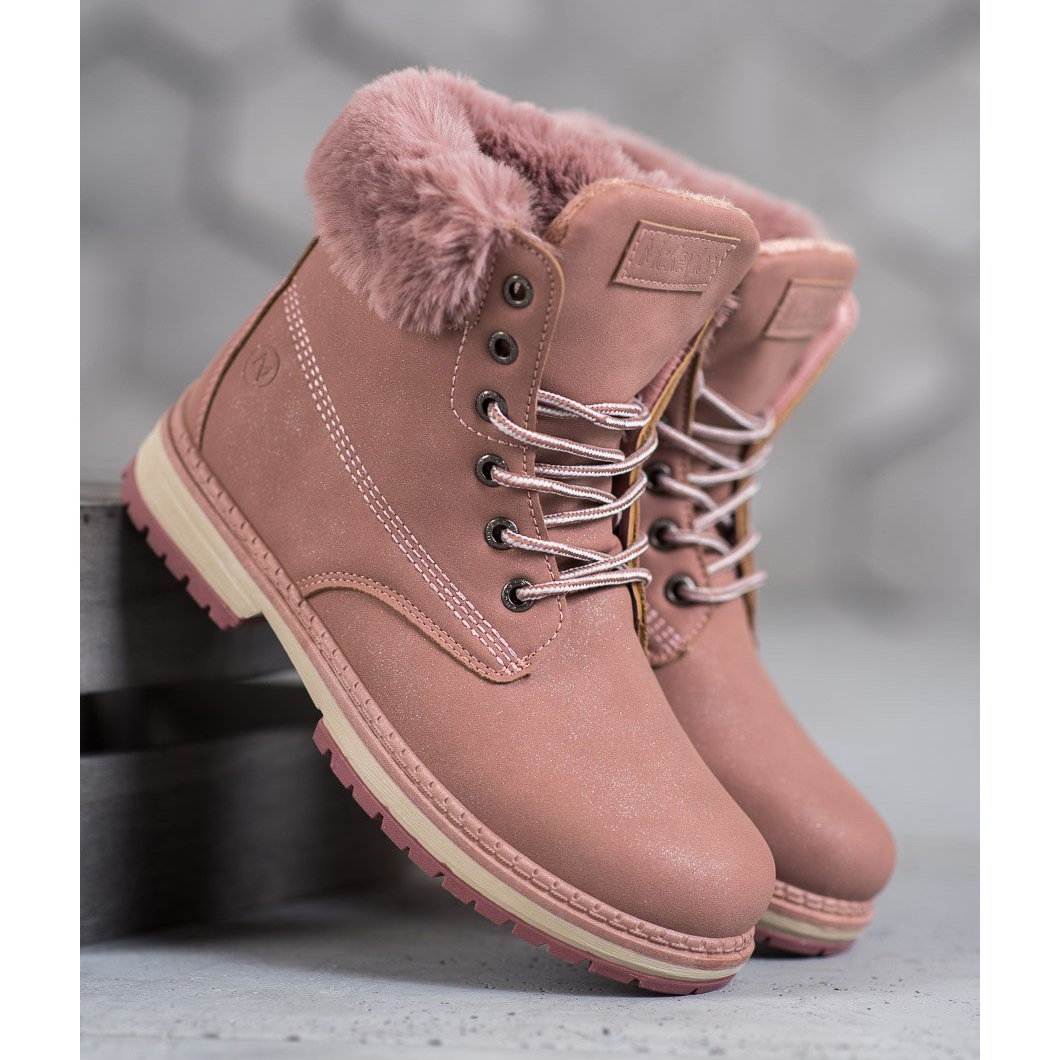 Trapery Z Brokatem MCKEYLOR w kolorze zgaszonego różu to doskonały wybór dla każdej modnej kobiety, która ceni wygodę oraz styl. Wykonane z wysokiej jakości skóry ekologicznej, te traperki łączą elegancję z casualowym charakterem, idealnie wpisując się w trendy na sezon jesień/zima.