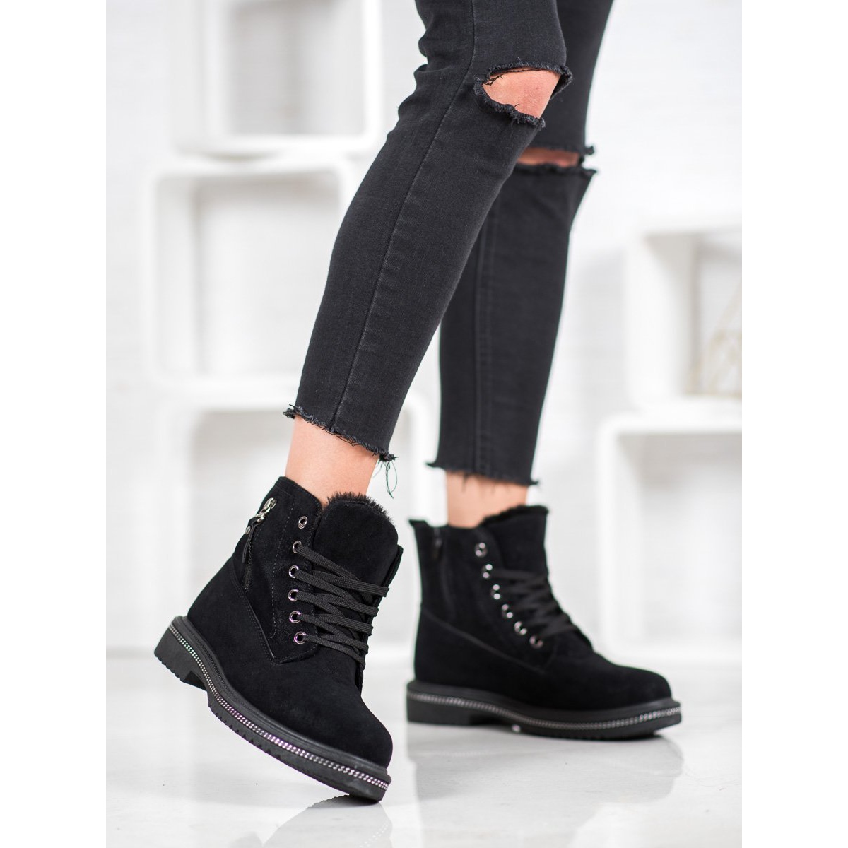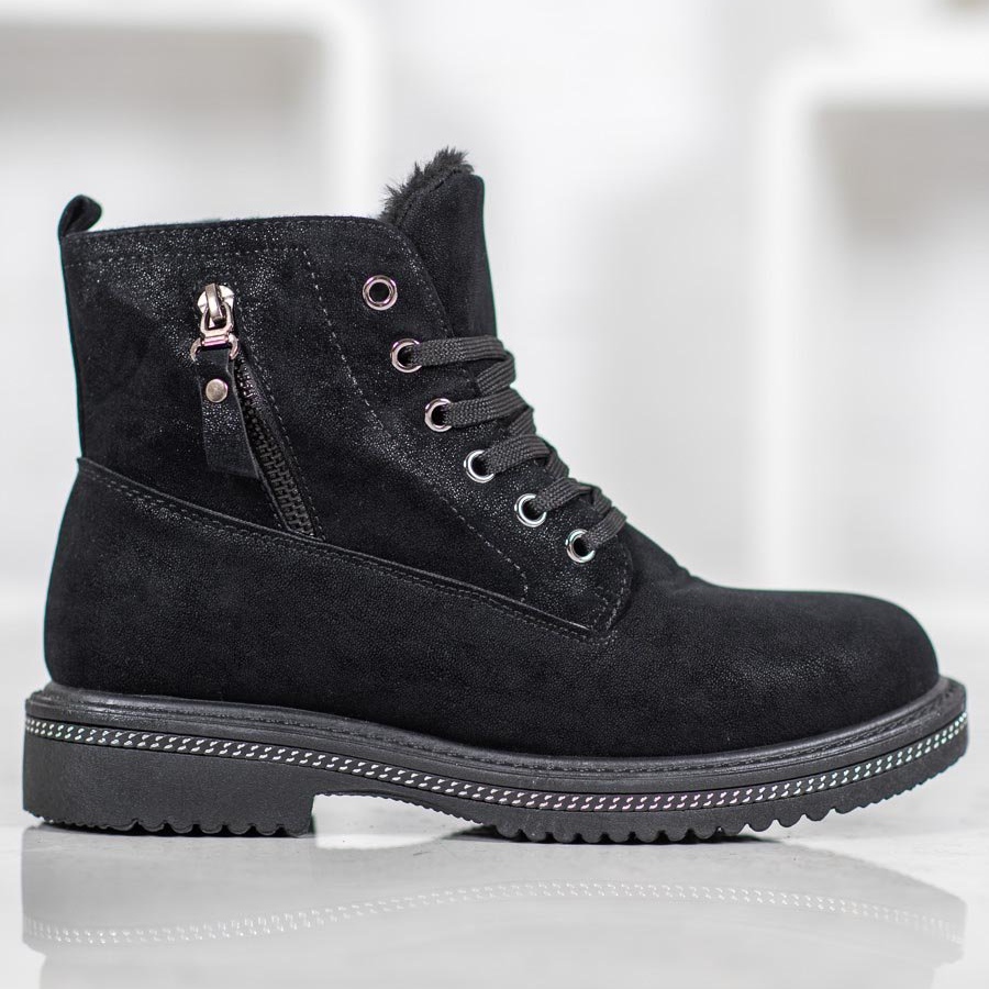 SHELOVET Trapery Z Brokatem w kolorze czarnym to idealna propozycja dla kobiet, które pragną połączyć modny wygląd z wygodą. Te nowoczesne traperki wyróżniają się wyższą cholewką, która doskonale chroni stopy przed niekorzystnymi warunkami atmosferycznymi. Dzięki sznurowaniu można je łatwo dopasować do indywidualnego kształtu stopy, co zapewnia komfort noszenia przez cały dzień.