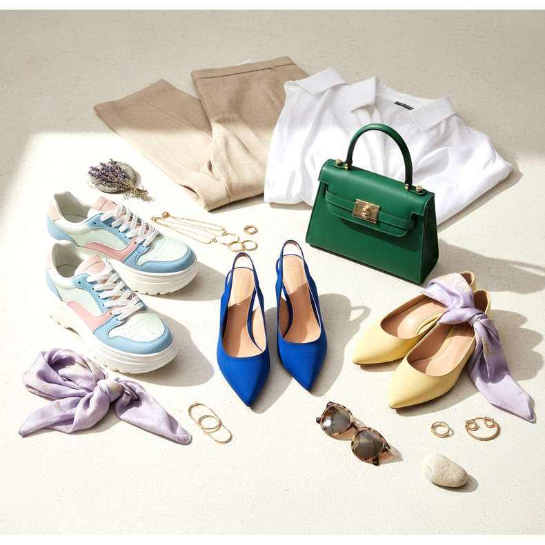 Dla tych, którzy preferują bardziej delikatne rozwiązania, wiosna 2026 przygotowała bogaty wybór pastelowych tonów. Pudrowy róż, jasny błękit, miętowa zieleń i delikatna lawenda nadają lekkości i świeżości każdej stylizacji. Pastelowe baleriny, klapki czy loafersy to doskonały wybór do lekkich, wiosennych sukienek i spodni z lnu lub bawełny.