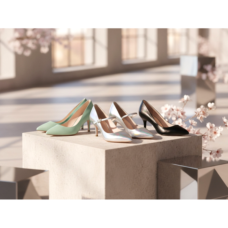 Jedną z najgłośniejszych nowności sezonu jest powrót kitten heels. Te niskie, smukłe szpilki o wysokości 3-5 cm, doskonałe kołyszą równowagi między elegancją i komfortem. Na wybiegach dominowały modele ze szpiczastym noskiem, w pastelowych kolorach oraz warianty metaliczne.