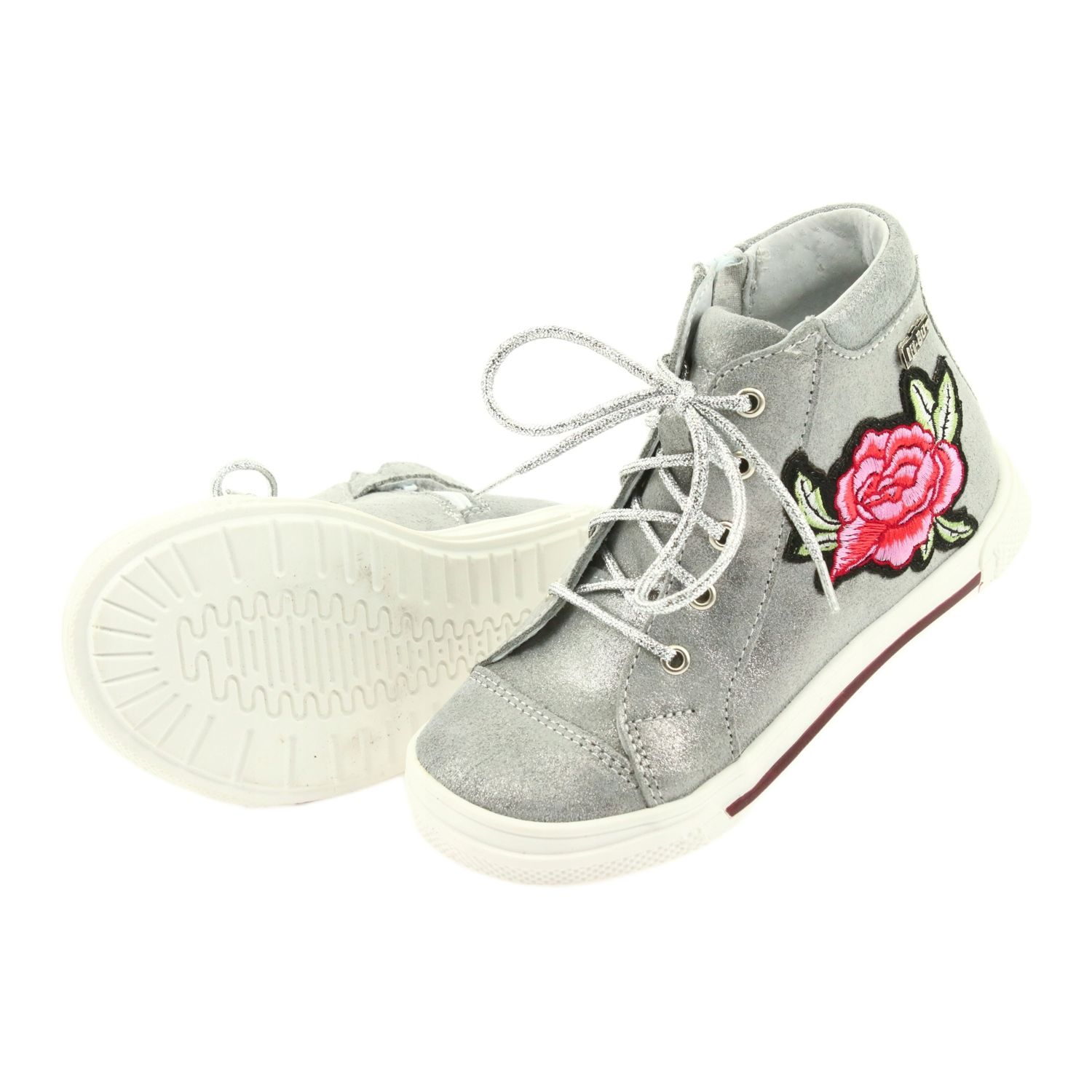 Ren But Trzewiki buty dziewczęce srebrne Ren But 3237 szare