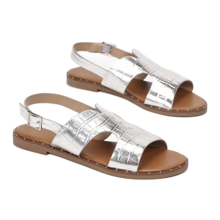 Oto idealna propozycja na letnie dni – sandały Vices 2016-6-52 w eleganckim, srebrnym kolorze. Te klasyczne sandały na płaskiej podeszwie to must-have w każdej damskiej szafie. Wykonane z wysokiej jakości ekoskóry, charakteryzują się cholewką z efektownym tłoczeniem, które imituje skórę krokodyla, dodając butom wyjątkowego stylu i nowoczesnego wyrazu.