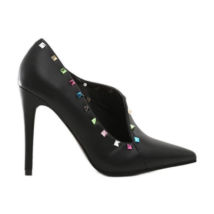 Czółenka Vices 2092-1A wyróżniają się szpiczastym noskiem, co dodaje im klasy oraz szyku. Dzięki syntetycznej podeszwie, zapewniają nie tylko trwałość, ale i komfort noszenia. Obcas w wysokości 10,5 cm połączony z modnym stylem sprawia, że te buty idealnie modelują sylwetkę i wysmuklają nogi.