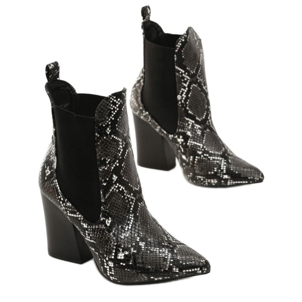 Stylowe botki Vices 3313-38-black to idealny wybór dla kobiet, które cenią sobie modę i wygodę. Wykonane z wysokiej jakości imitacji wężowej eko skóry, te eleganckie buty z pewnością przyciągną spojrzenia. Dzięki lekkiemu ociepleniu, świetnie sprawdzą się w chłodniejsze dni, a elastyczna guma po bokach zapewnia łatwe zakładanie i komfort noszenia.