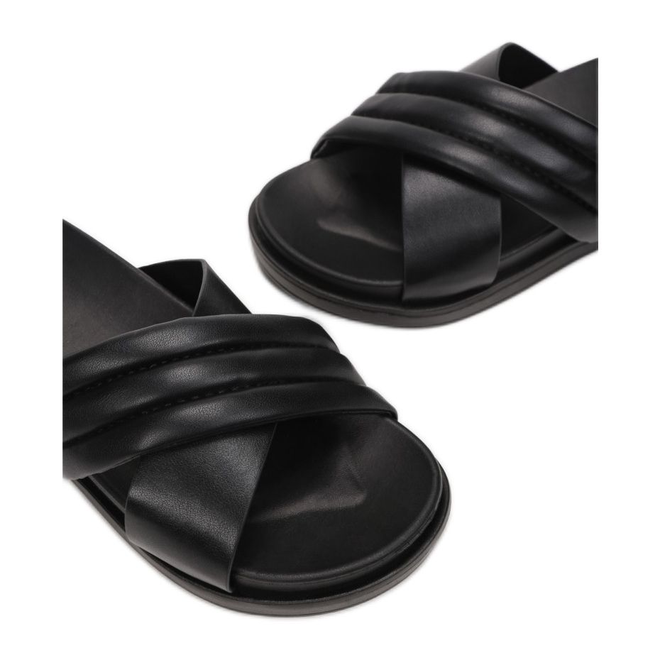 Cechą wyróżniającą te klapki są dwa szerokie, skośnie pikowane paski, które skutecznie podtrzymują stopę, gwarantując jednocześnie modny wygląd. Wykonane z wysokiej jakości ekoskóry, klapki Vices są nie tylko estetyczne, ale i przyjazne dla środowiska. Dodatkowo, wkładka z gumy zapewnia komfort noszenia, co czyni je idealnym wyborem na długie letnie dni.