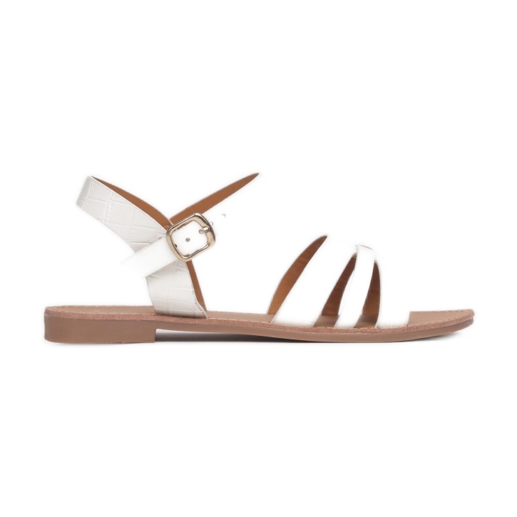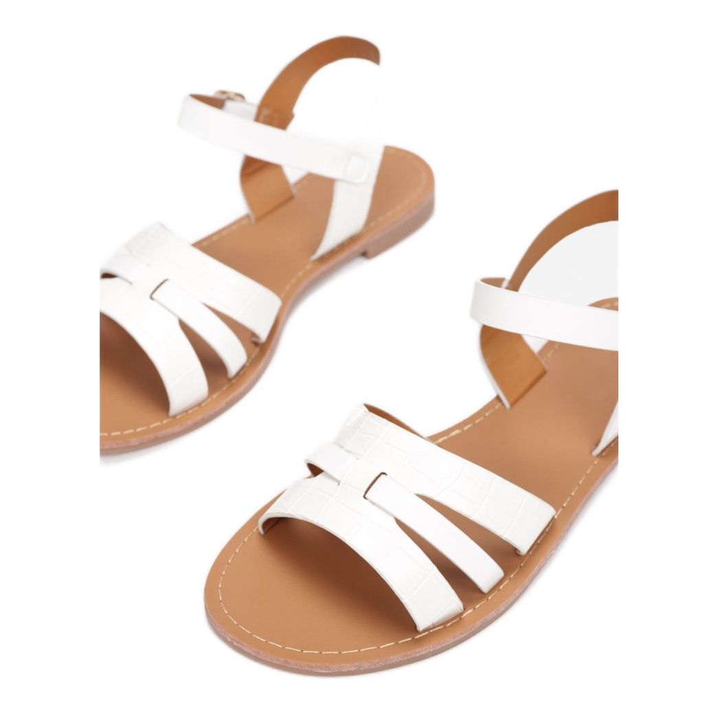 Te modowe sandały wyróżniają się płaskim obcasem o wysokości 1.0 cm, co sprawia, że nadają się zarówno na codzienne spacery, jak i na letnie wyjścia. Brak noska oraz zapięcie na sprzączkę dodają im lekkości i subtelności, a biały kolor sprawia, że są niezwykle uniwersalne i pasują do wielu kolorów i wzorów.