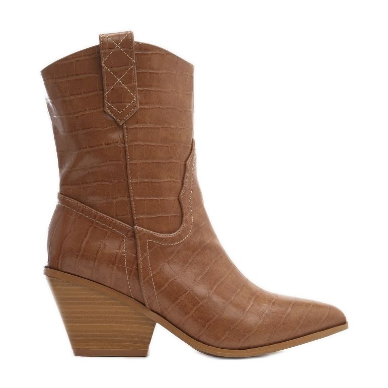 Odkryj wyjątkowy styl i komfort noszenia dzięki kowbojkom Vices 8498-68-camel w brązowym odcieniu. Te eleganckie botki na obcasie o wysokości 7 cm łączą w sobie klasyczny design i nowoczesne materiały. Wykonane z wysokiej jakości ekoskóry, prezentują się stylowo dzięki noskowi w szpic oraz unikalnemu tłoczeniu imitującemu krokodylą skórę.