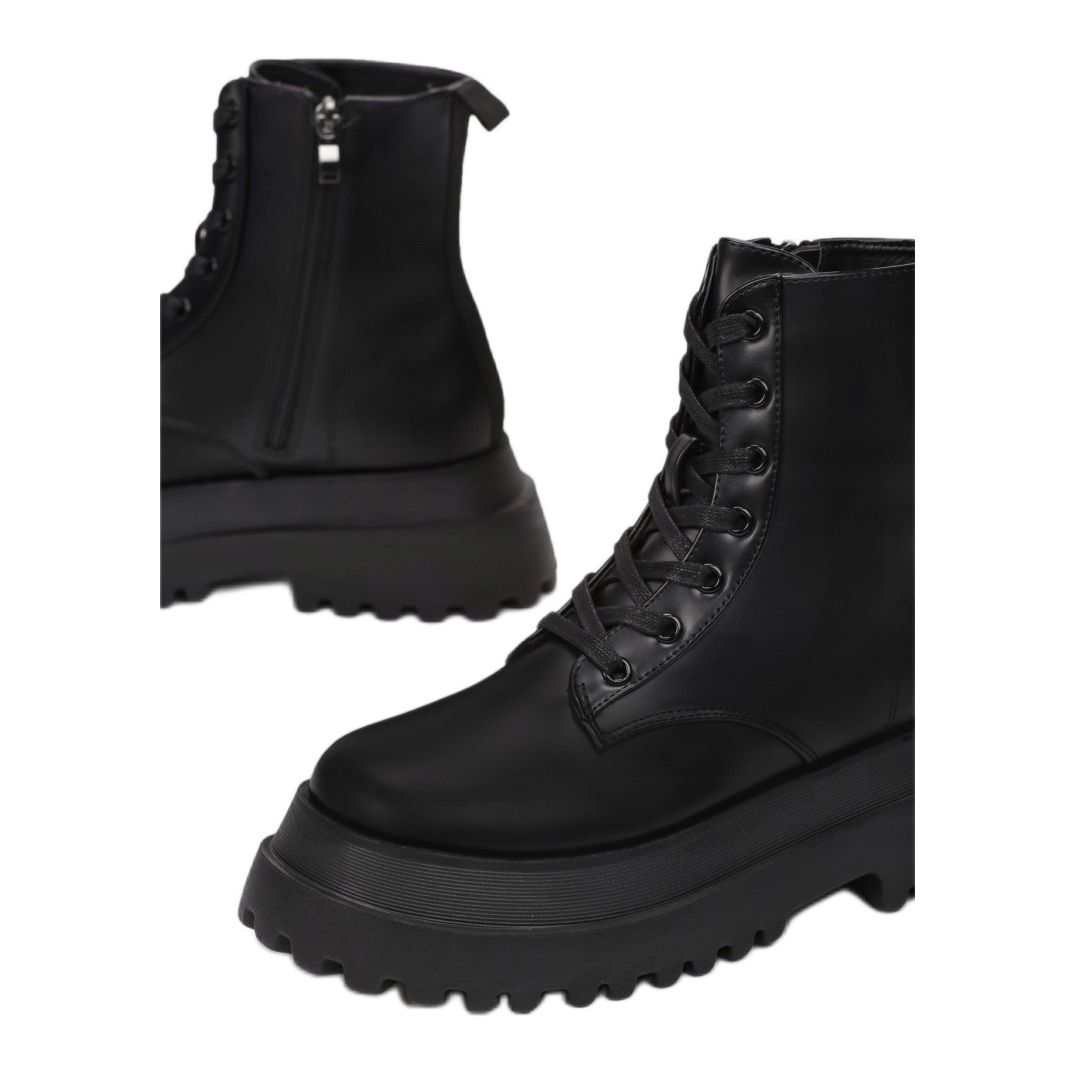 Botki mają okrągły nosek, co dodaje im uroku, a klasyczny czarny kolor sprawia, że są niezwykle uniwersalne – łatwo je zestawić z różnorodnymi stylizacjami. Zapięcie na sznurówki pozwala na dokładne dopasowanie do stopy, co dodatkowo zwiększa komfort noszenia.