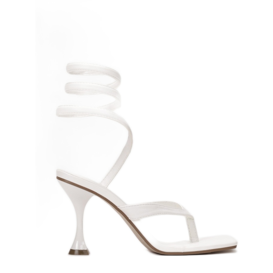 Model ten charakteryzuje się modnym fasonem japonki, który doskonale wpisuje się w aktualne trendy. Dodatkowo, wysokość obcasa wynosząca 8 cm sprawia, że buty nadają piękny kształt sylwetce, optycznie wydłużając nogi. Zapięcie w formie innowacyjnego rozwiązania ułatwia zakładanie i zdejmowanie, co czyni te sandały wyjątkowo funkcjonalnymi.