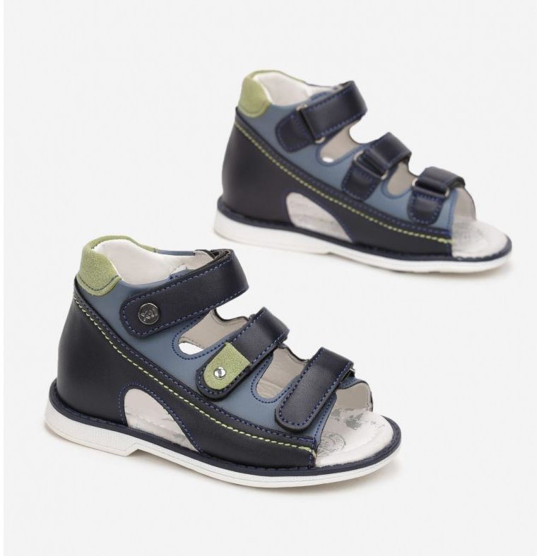 Z przodu znajdują się trzy paski zapinane na rzepy, co ułatwia zakładanie i dopasowanie obuwia do stopy dziecka. Ozdobne przeszycia nadają sandałom wyjątkowego charakteru, a otwarty, okrągły noska sprawia, że nogi oddychają w ciepłe dni.