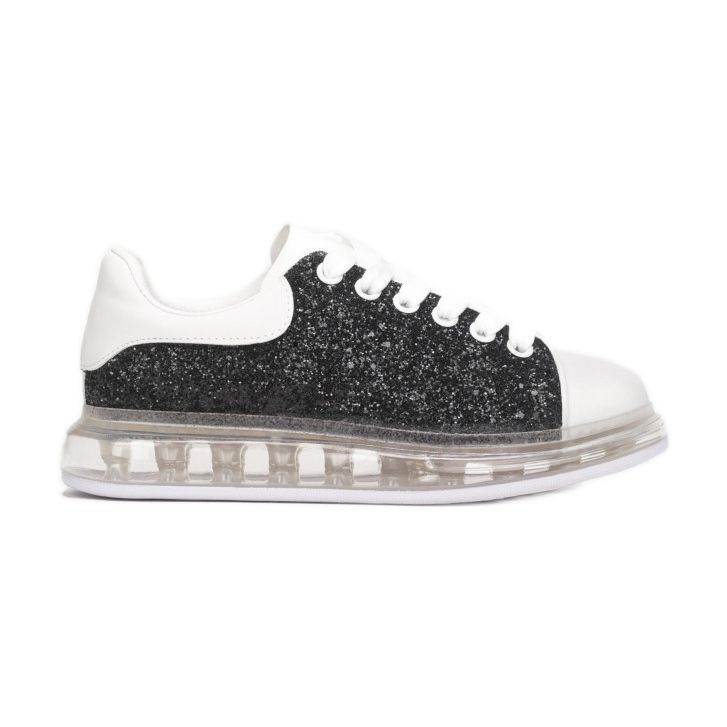 Ciekawym akcentem są wstawki z brokatu po bokach, które dodają im wyjątkowego charakteru i blasku. Sneakersy te są wiązane na płaskie sznurówki, co pozwala na łatwe dopasowanie ich do stopy. Na uwagę zasługuje także gruba podeszwa wypełniona gazem, która zapewnia doskonałą amortyzację, dbając o Twoje stopy podczas aktywności.