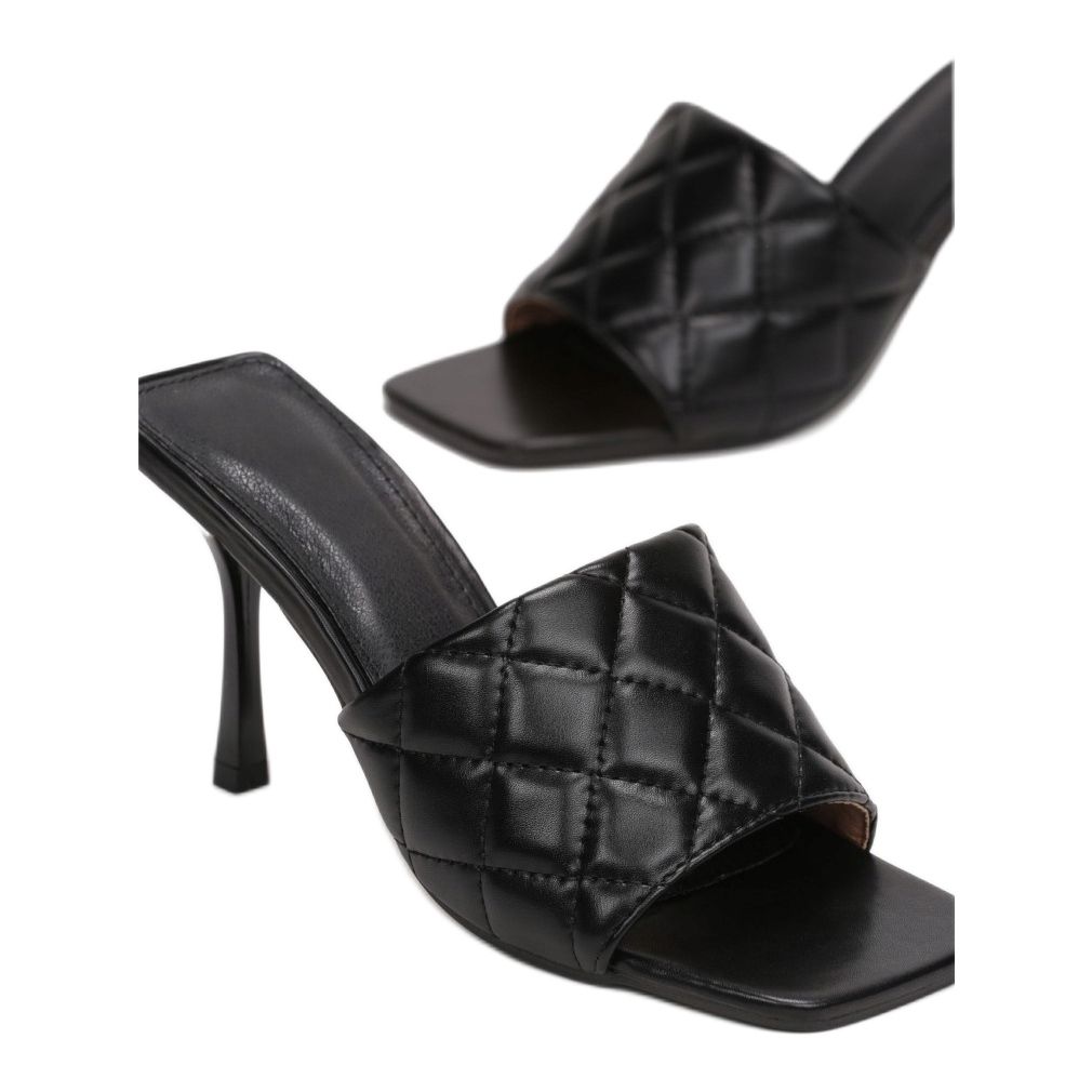 Klapki Vices CIC-3-38 charakteryzują się stylowym obcasem w formie szpilki o wysokości 8 cm, co nadaje im elegancki sznyt. To doskonałe rozwiązanie zarówno na codzienne wyjścia, jak i na specjalne okazje. Ich Uniwersalny czarny kolor sprawia, że można je łatwo dopasować do różnych stylizacji.