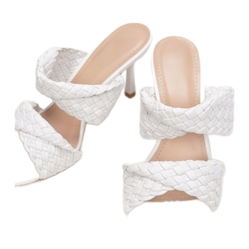 Klapki wykonane są z wysokiej jakości skóry ekologicznej, co sprawia, że doskonale dopasowują się do stopy, zapewniając komfort noszenia przez cały dzień. Posiadają syntetyczną podeszwę, która gwarantuje trwałość i stabilność podczas użytkowania. Oprócz tego, ich wysokość obcasa wynosząca 8 cm dodaje elegancji i wysmukla sylwetkę, idealnie komponując się z letnimi stylizacjami.