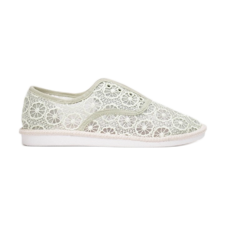 Wnętrze obuwia wypełnia lniana wkładka, która zapewnia przewiewność i wygodę, a syntetyczny materiał podeszwy sprawia, że buty są lekkie i trwałe. Okrągły nosek i niska wysokość obcasa (1.5 cm) sprawiają, że te trampki są idealne dla kobiet ceniących sobie zarówno elegancję, jak i wygodę.