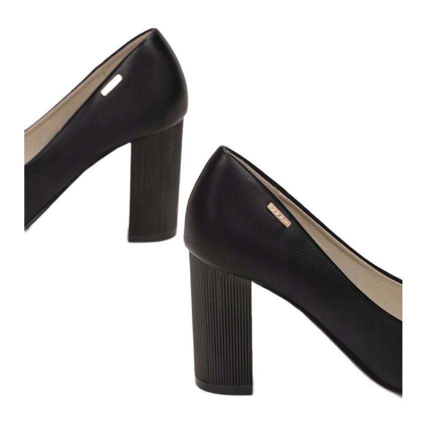 Wykonane z wysokiej jakości ekoskóry, czółenka są nie tylko estetyczne, ale również praktyczne. Naturalna skórzana wkładka zapewnia wygodę noszenia nawet przez dłuższy czas. Sercem tego modelu jest 9-centymetrowy słupek, który dodaje subtelnej elegancji, a szpiczasty nos pozwala na optyczne wydłużenie nóg.