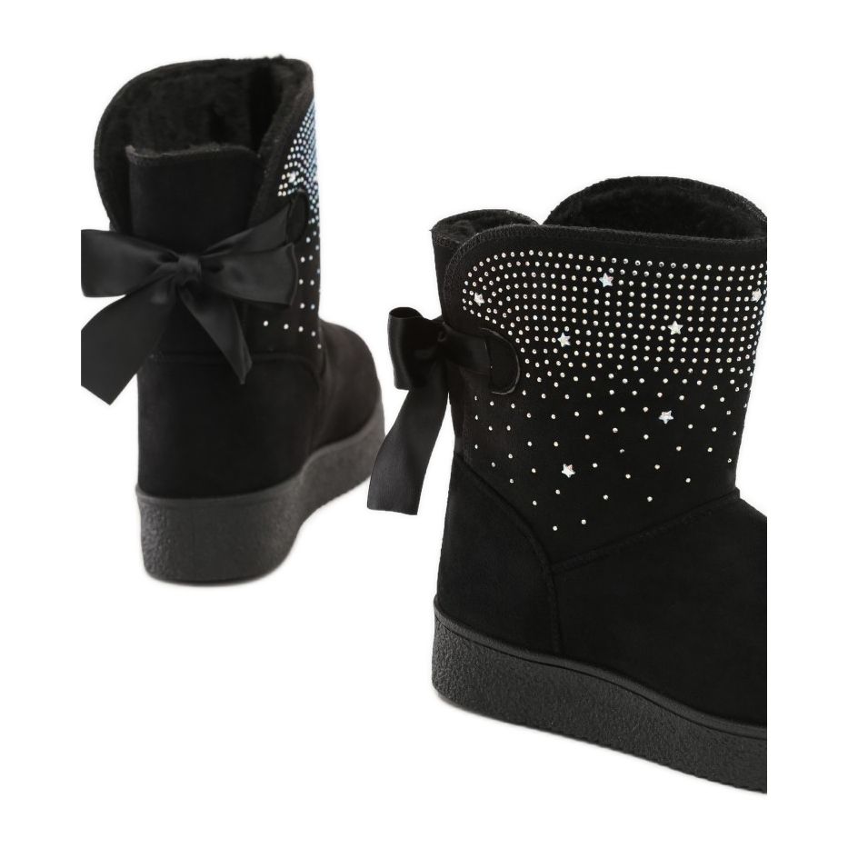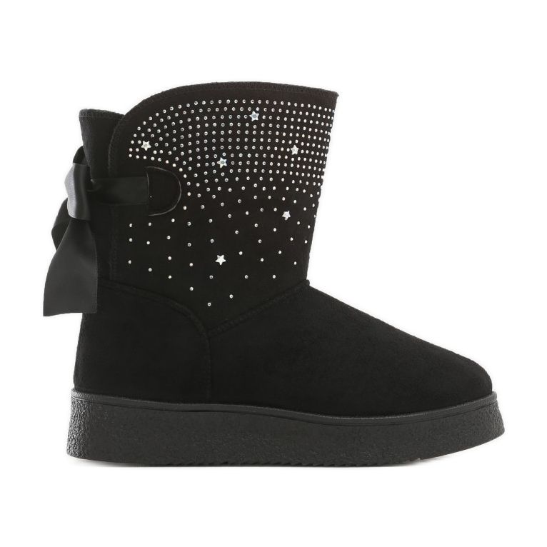 Wykonane z ekologicznego zamszu, charakteryzują się mocnym ociepleniem sztucznym futrem, co sprawia, że Twoje stopy będą zawsze ciepłe i komfortowe, nawet podczas najchłodniejszych dni. Czarne śniegowce na platformie o wysokości 4,5 cm dodają subtelnej elegancji, a okrągły nosek zapewnia wygodę podczas noszenia.
