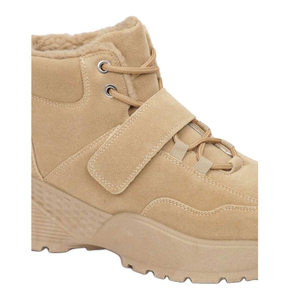Wykonane z ekologicznego zamszu, sneakersy te są nie tylko przyjazne dla środowiska, ale także wygodne w noszeniu. Ich okrągły nosek oraz ocieplenie sztucznym futerkiem sprawiają, że idealnie nadają się na chłodniejsze dni. Wysokość do kostki daje poczucie stabilności i wsparcia, co czyni je idealnym wyborem do codziennych stylizacji.