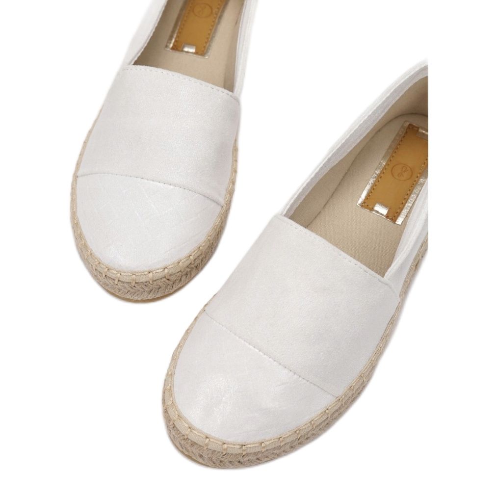 Espadryle Vices LX209-71 w kolorze białym to stylowy wybór na wiosnę i lato. Dzięki wsuwanej konstrukcji są wygodne w zakładaniu i zdejmowaniu, co dodatkowo podnosi komfort użytkowania. Okrągły nosek ozdobiony subtelnym nabłyszczeniem i żłobieniami nadaje im elegancki, a zarazem modny wygląd, idealny na różne okazje.