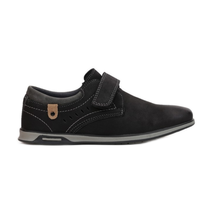 Wykonane z wysokiej jakości nubuku syntetycznego, półbuty są jednocześnie trwałe i łatwe w pielęgnacji. Kontrastowa patka z okrągłym nitem oraz staranne przeszycia dodają im charakteru, a wstawki z ekoskóry nadają eleganckiego wyglądu. Sztywny zapiętek zapewnia odpowiednie wsparcie dla stopy, a skórzana wkładka gwarantuje komfort nawet podczas długiego noszenia.