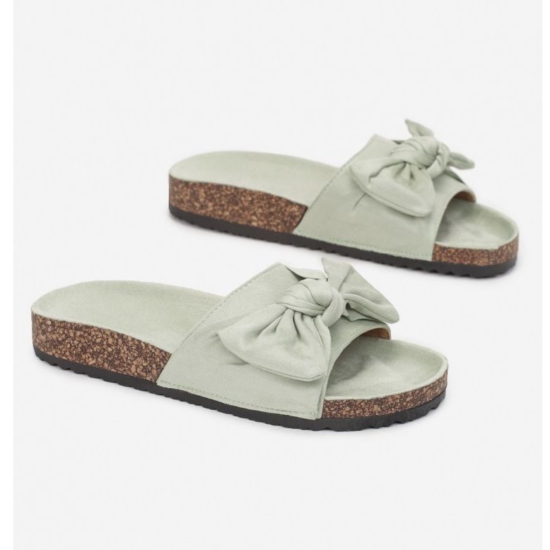 Ich korkowa podeszwa, zakończona bieżnikiem, gwarantuje doskonałą przyczepność i stabilność, co sprawia, że są idealne do letnich spacerów czy relaksu w ogrodzie. Szeroki pasek oraz elegancka kokardka w tym samym kolorze dodają klapkom wyjątkowego uroku i kobiecego charakteru.