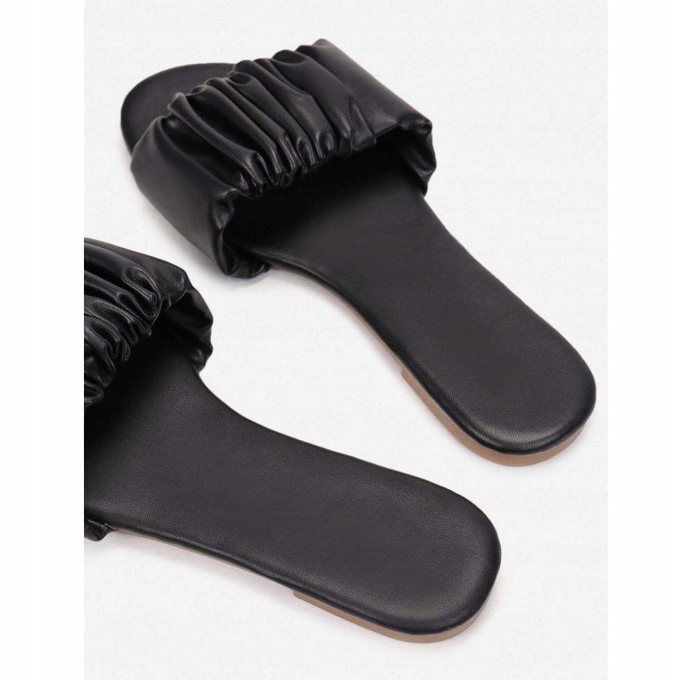 Osadzone na płaskim obcasie, klapki zapewniają wygodę noszenia przez cały dzień. Wykonane z wysokiej jakości ekoskóry, łączą estetykę z odpowiedzialnością ekologiczną, co czyni je doskonałym wyborem dla kobiet ceniących sobie styl i komfort jednocześnie.