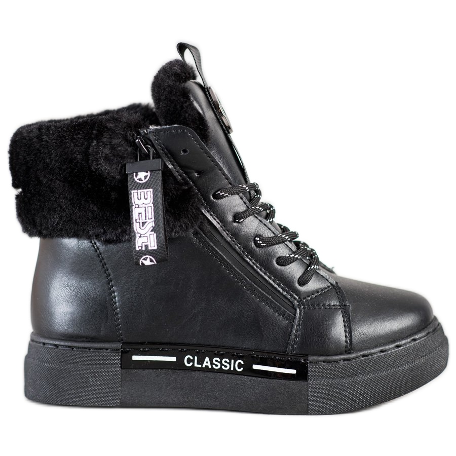 Weide Weide Wiązane Botki Z Futerkiem czarne