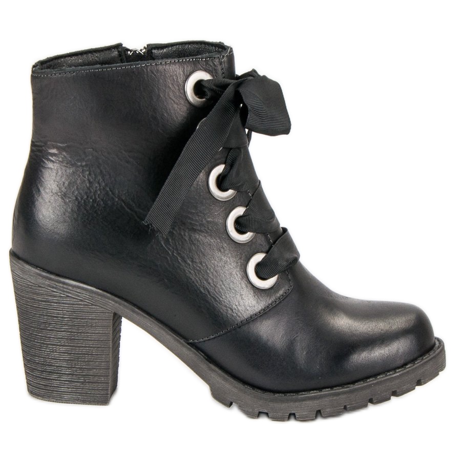 Vinceza Wiązane Botki Ze Skóry VINCEZA czarne
