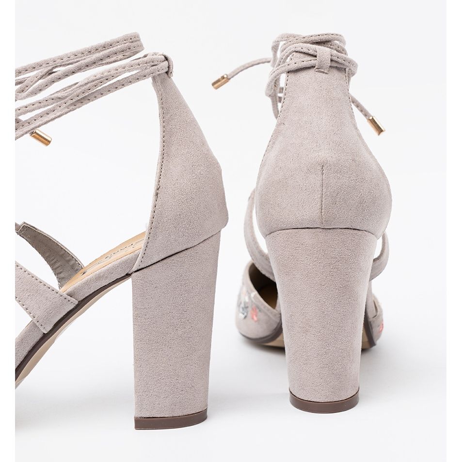 Szczegóły: Shelvt Wiązane czółenka z kwiatowym wzorem szare
